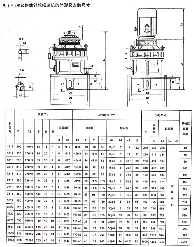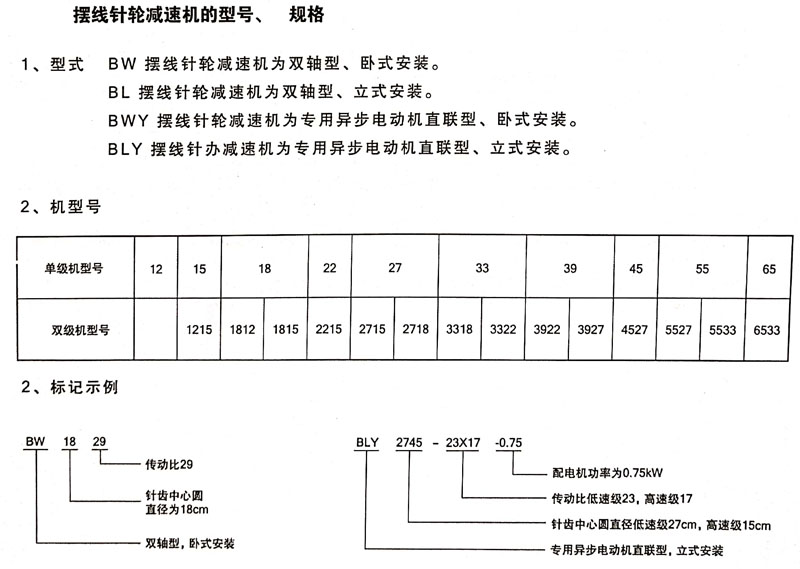 BLY 擺線針輪減速機為專用異步電動機直聯(lián)型、立式安裝